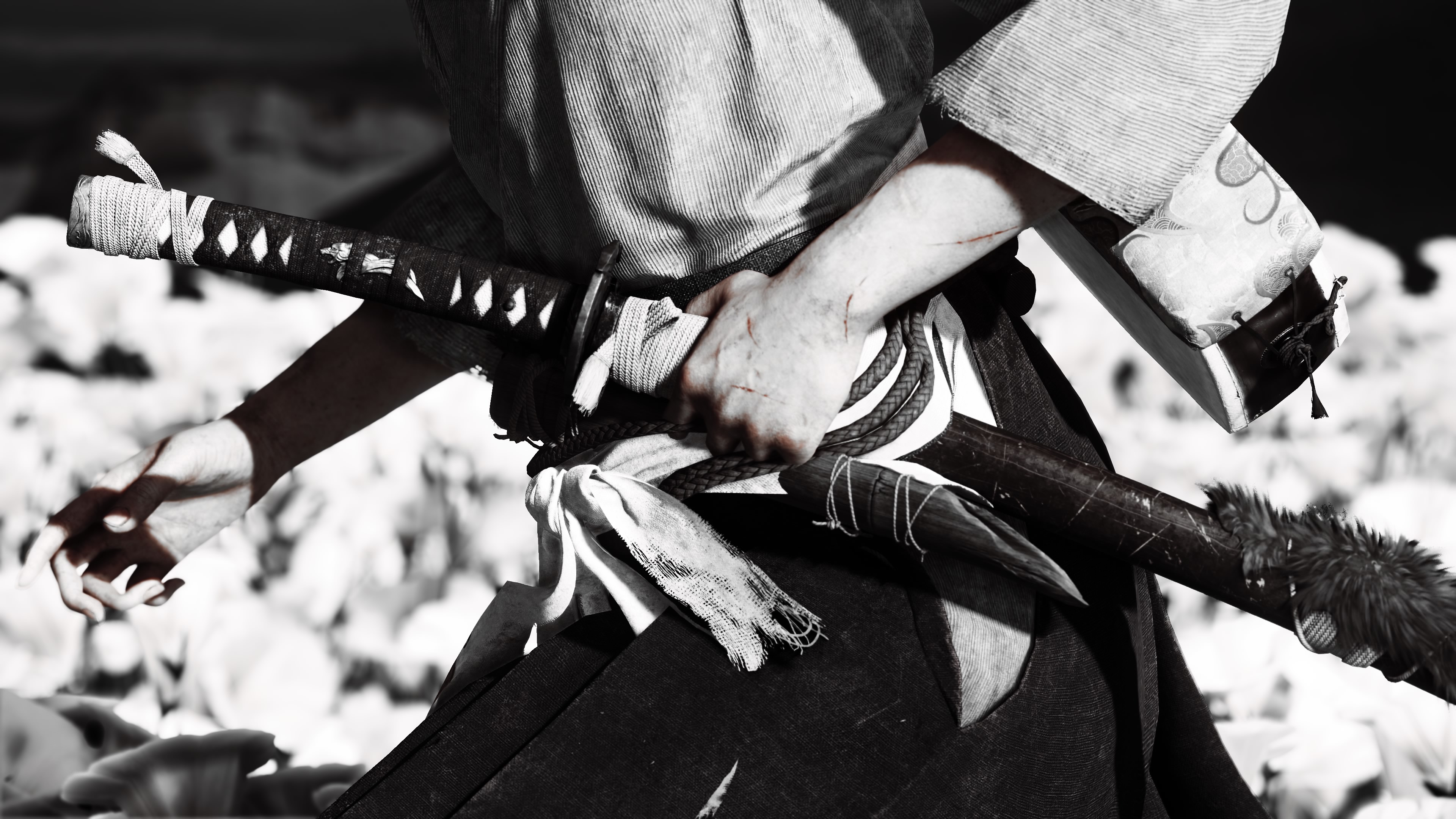 Fotos macro : em Ghost of Yōtei, 100 mm para cima pode ajudar você a dar zoom em detalhes mais sutis ou nos aproximar de momentos distantes.