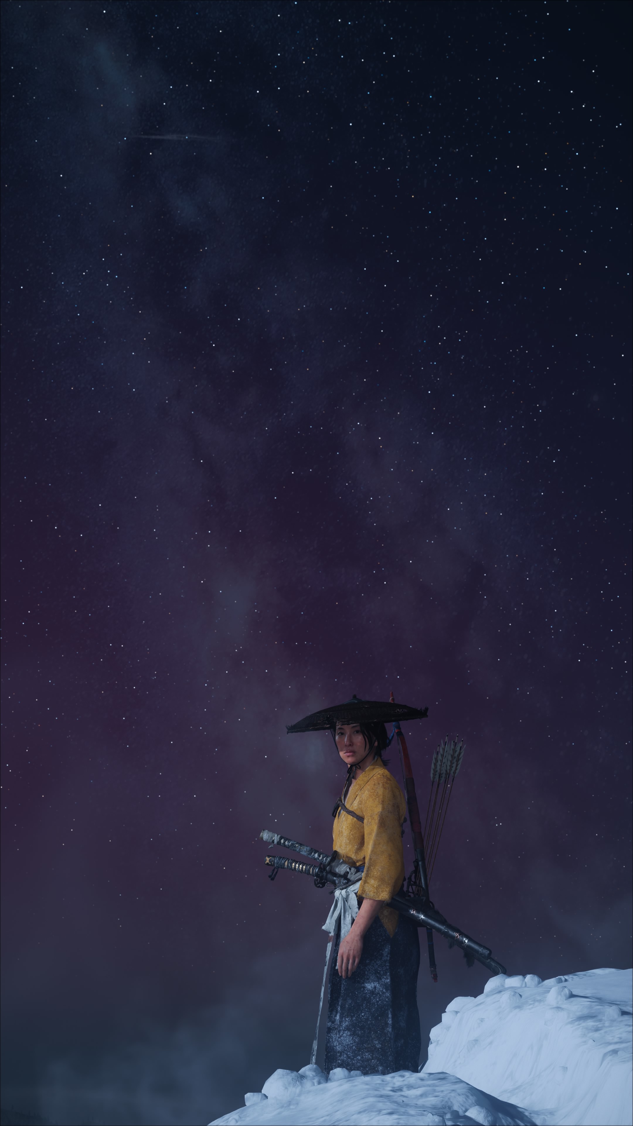 Retratos diurnos e noturnos. O primeiro usa o sol nascente para perfilar Atsu, com secção do corpo na sombra. O segundo, o luar, com Atsu posicionada no terço subalterno da imagem, enfatizando a magnitude do firmamento noturno ao fundo.