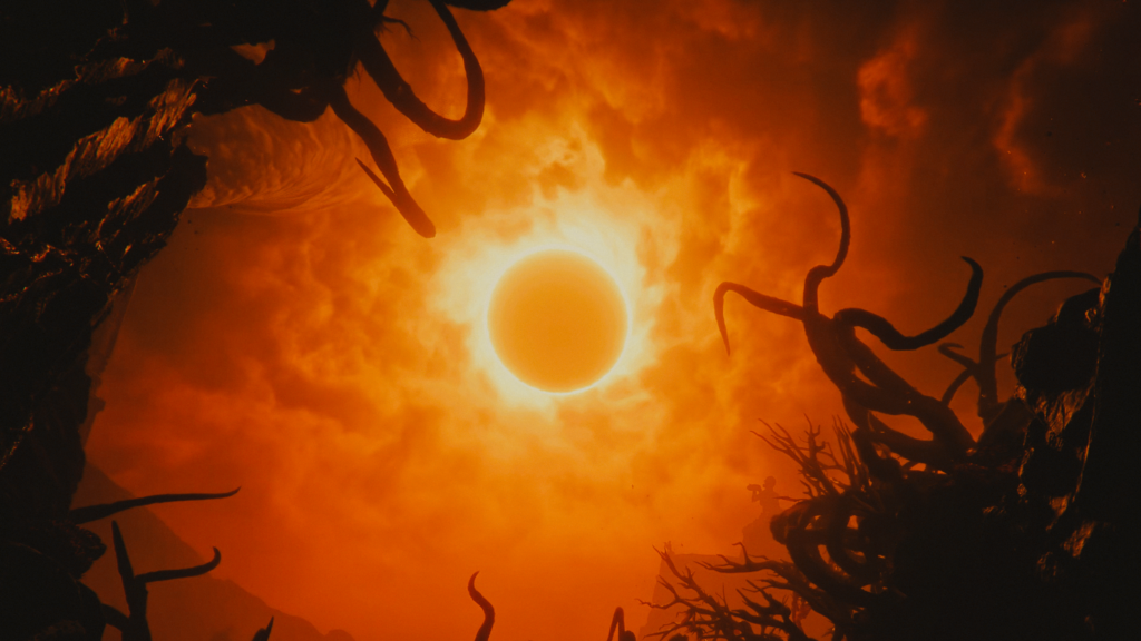 Em determinado momento, o sol do planeta entra em eclipse e isso altera completamente o jogo. O visual muda, o clima fica mais pesado e, principalmente, os inimigos se tornam mais perigosos.